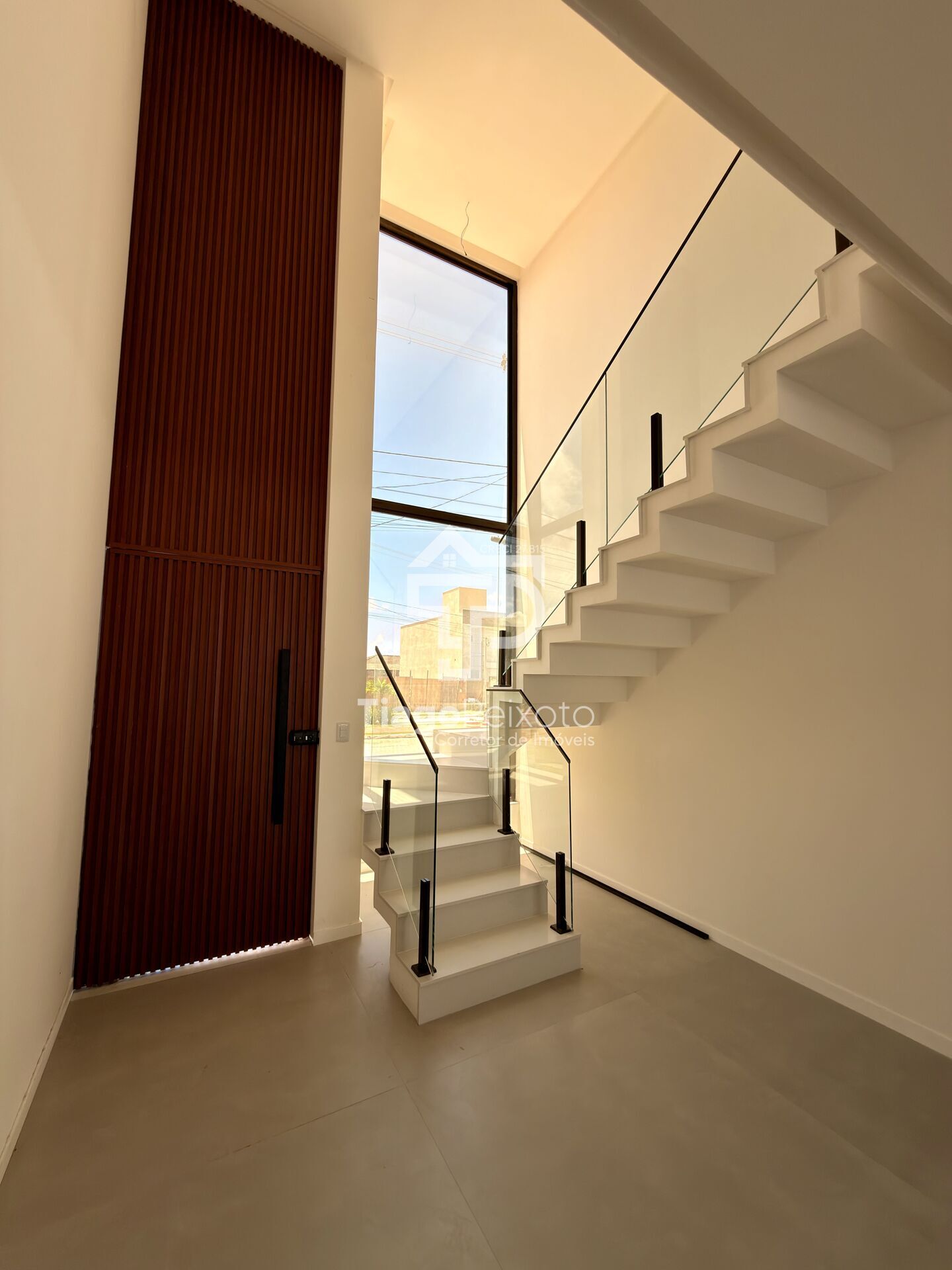 Ao entrar, você se depara com uma imponente sala com pé direito duplo, que traz amplitude, sofisticação e muita luz natural, deixando a casa ainda mais elegante e acolhedora.